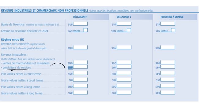 - ligne 5NP, si vous optez pour le régime du « micro BIC »,