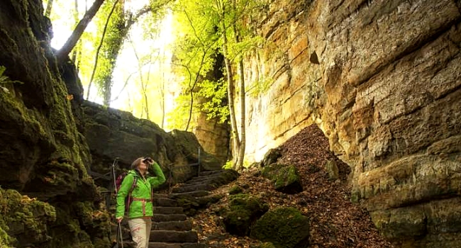 Après avoir visité l’abbaye, à 25 min se situe l’un des sites les plus visités de la région : la Gorge du Loup ou « Wolfsschlucht« . Il s’agit en fait d’un grand canyon dans lequel sillonnent plusieurs parcours de randonnées que vous pourrez choisir d’arpenter. Alors, on enfile les chaussures ?